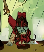 In her younger years, which involved a flashback of her hiding in a cave with No. 6, she was shown to wear a large hair bow and kimono much similar to now. It had magenta hues, with a sky blue bow tied behind her waist and white-blue flowery patterns on the ends of her sleeves.