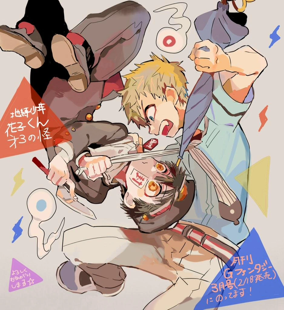 Nene and Hanako are on the rooftop when Kou appears. Hanako says that Kou is able to see him because he is a descendant of the exorcist Minamoto Yorimitsu. Kou confirms this, and attacks Hanako with the spirit staff, shocking him with lightning. Nene jumps in front of Hanako to stop Kou before he can attack again, introducing herself as Hanako's assistant and friend. She insists that Hanako isn't a bad supernatural as he's saved her before. Kou tells her that Hanako isn't a simple supernatural, but instead a deeply evil spirit that his grandmother was barely able to seal away, and the kitchen knife is proof that Hanako had killed someone with it when he was alive.