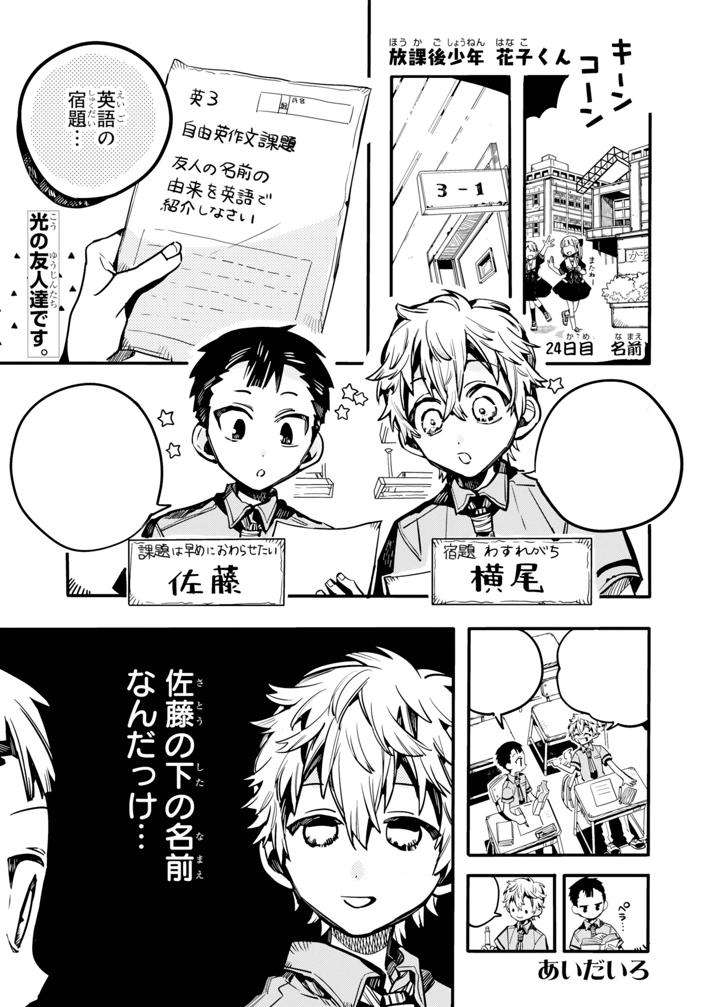 Yokoo and Satou are in class and they must introduce the origin of first name of their. Yokoo have forgot the first name of Satou so he ask what is the story behind his name. Satou respond who that it is a confection. Satou finds after that he has forgotten his name and says that he is divorcing him but Satou also forgot and said at random "Yokoo Eiichi" so he ask what is his first name starting over. They now the first name of Kou and Yokoo said who Satou is the "honest confectionary store's third son Satou Ichigo Daifuku" but it is not. Satou finally said "it's satou yo"" and Yokoo interromping, he want to guess but all attempt are stranded and Satou said at his friend who "Eiichi fit him" and "why don't change you name"