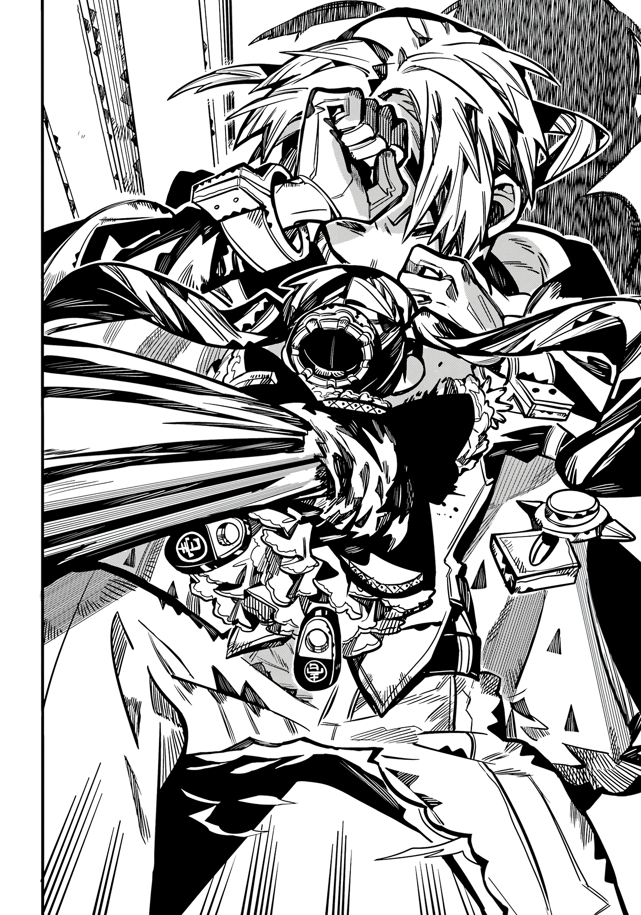 The chapter begins right before the ending of the previous chapter, with Tsukasa Yugi victorious over a dead Kako, and holding one of his gears in his hand.