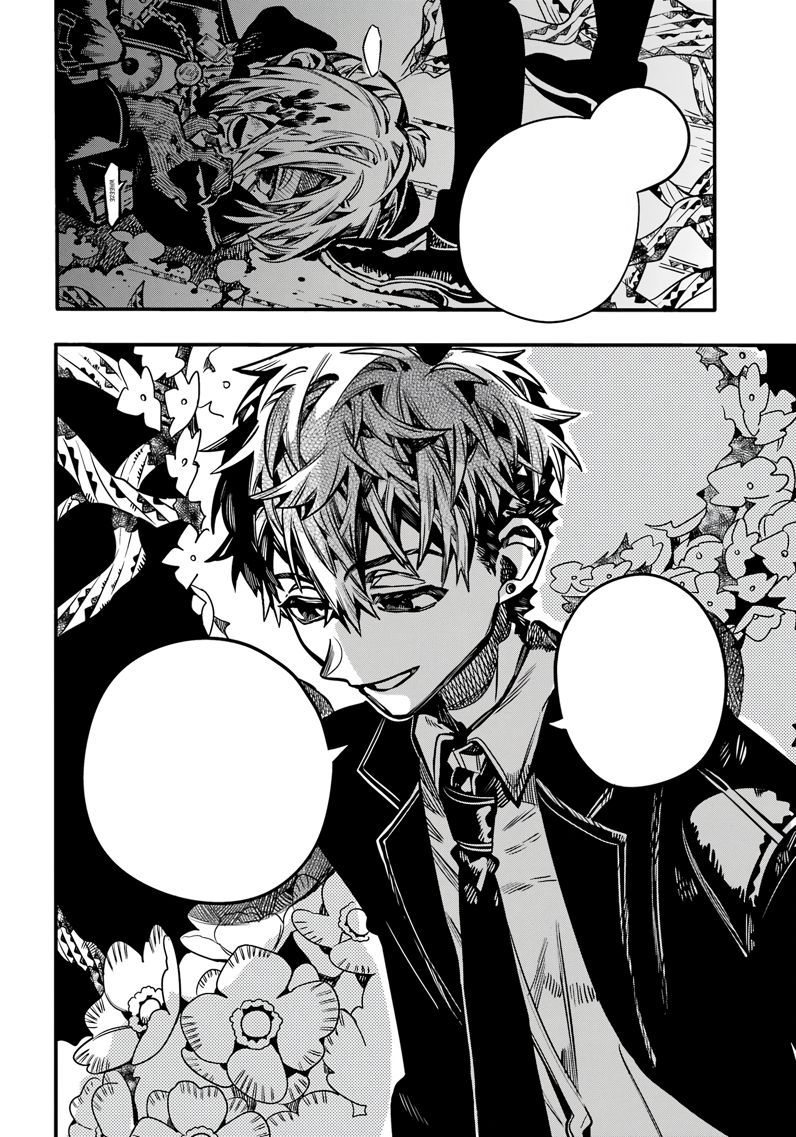 The Chapter begins where the previous chapter left off, with Hanako pinning down Tsukasa Yugi, the Clock Keeper's Yorishiro dropped, and Hanako saying the last line, to which Yugi Tsukasa says that he knows.